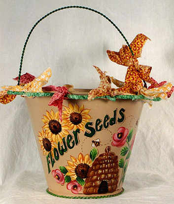 AC-198 “Flower Seeds Garden Pail” pattern packet, by Judy Morgan.